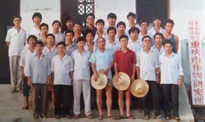 △1995年周開達院士考察原重慶市作物研究所水稻南繁育種基地時與全體南繁隊員合影