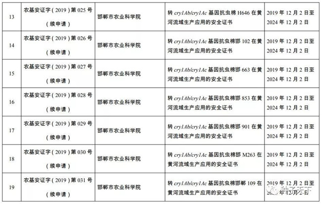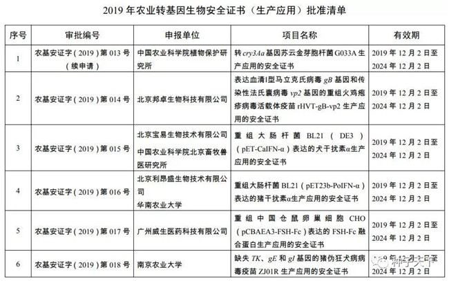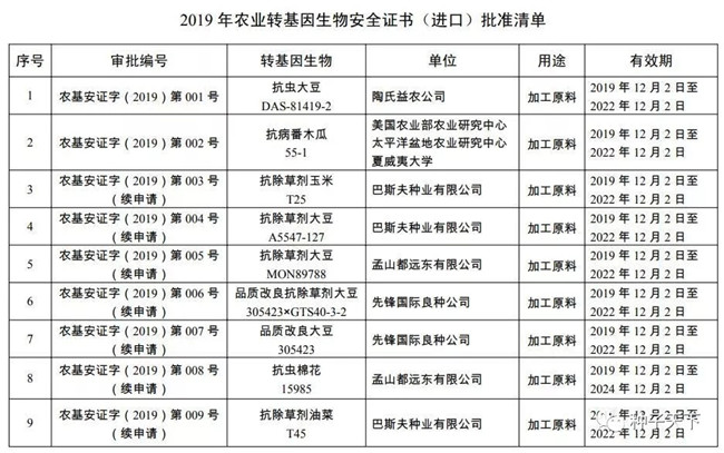 來源鏈接:2019年農(nóng)業(yè)轉(zhuǎn)基因生物安全證書批準(zhǔn)清單