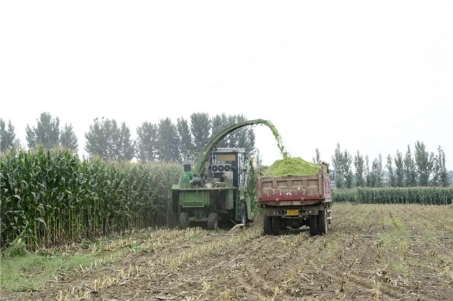 2019年9月20日,南陽(yáng)市新野縣歪子鎮(zhèn)。優(yōu)質(zhì)青貯玉米示范田內(nèi)機(jī)器轟鳴。大型青貯玉米收獲機(jī)械快速將整株玉米連片收獲粉碎,噴灑在隨行的運(yùn)輸車輛中。觀摩的農(nóng)機(jī)專家實(shí)時(shí)查看機(jī)械收獲及秸稈粉碎效果,對(duì)機(jī)器作業(yè)情況進(jìn)行評(píng)估;玉米種植專家忙著講解青貯玉米新品種特點(diǎn)和種植注意事項(xiàng);種植大戶則關(guān)心青貯玉米的畝產(chǎn)量和經(jīng)濟(jì)效益;企業(yè)代表著急地詢問(wèn)青貯玉米特性、窖貯加工等技術(shù)問(wèn)題……隨后,這些粉碎收獲的玉米被送往近在地頭的科爾沁牛業(yè)公司,并將被迅疾窖貯。而這些窖貯玉米因?yàn)闋I(yíng)養(yǎng)成分高、香甜可口,成為公司數(shù)萬(wàn)頭肉牛的“最愛(ài)”。