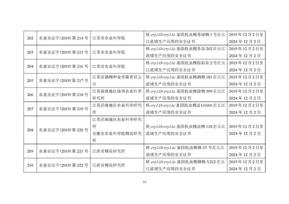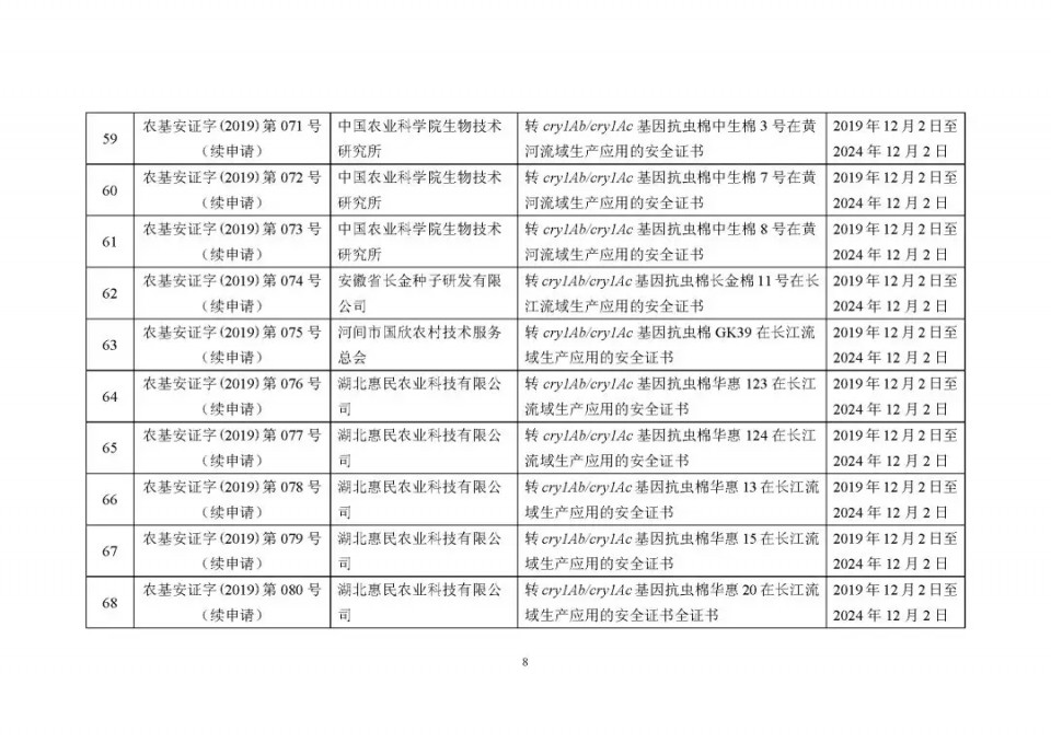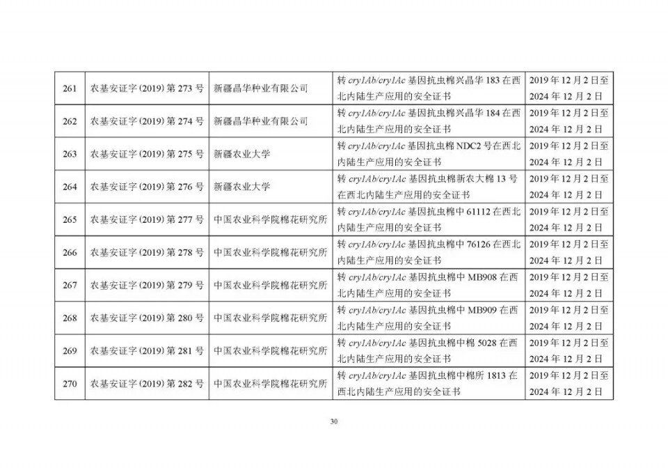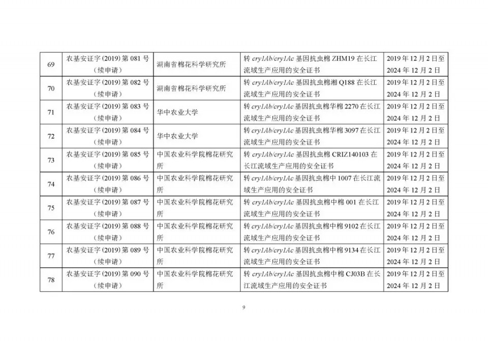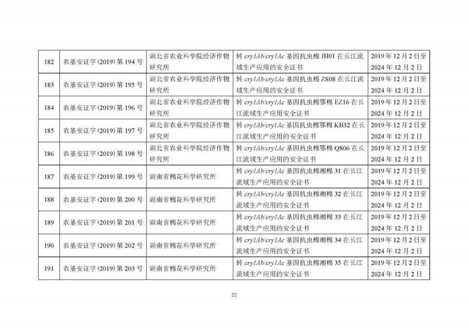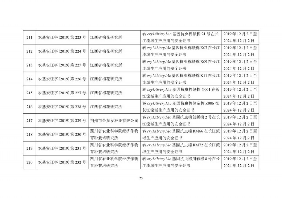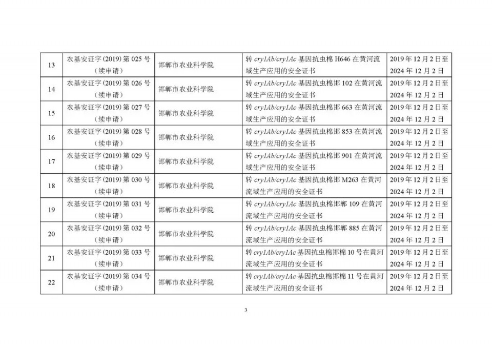 2020年1月21日15:00農(nóng)業(yè)農(nóng)村部網(wǎng)站公布了 2019 年農(nóng)業(yè)轉(zhuǎn)基因生物安全證書(shū)(生產(chǎn)應(yīng)用)批準(zhǔn)清單 ,詳見(jiàn)如下: