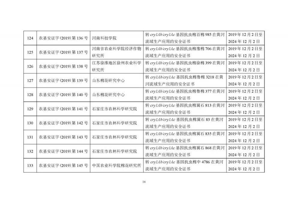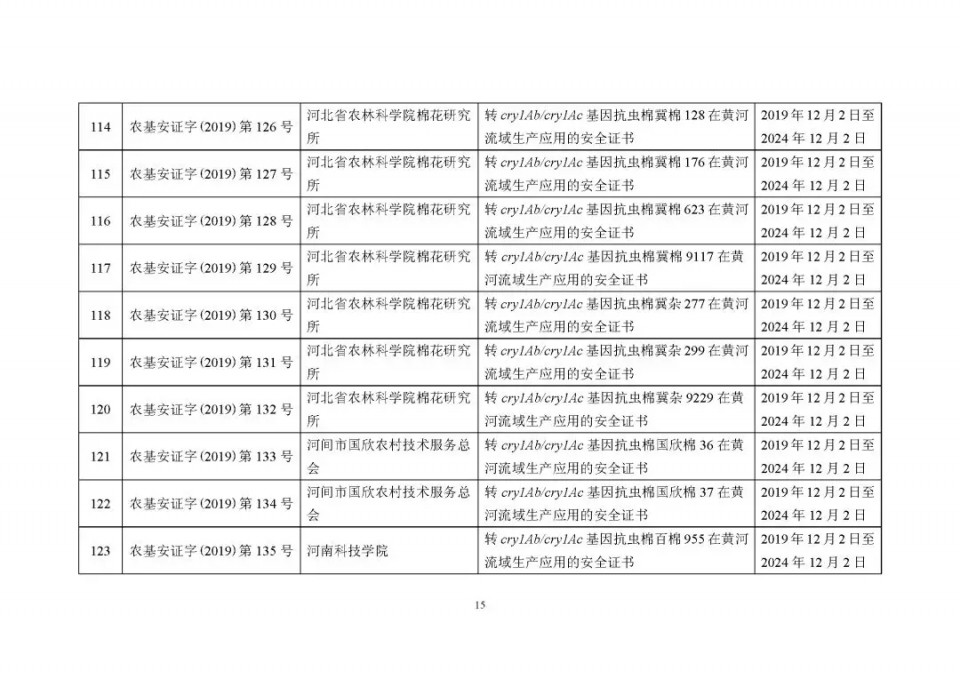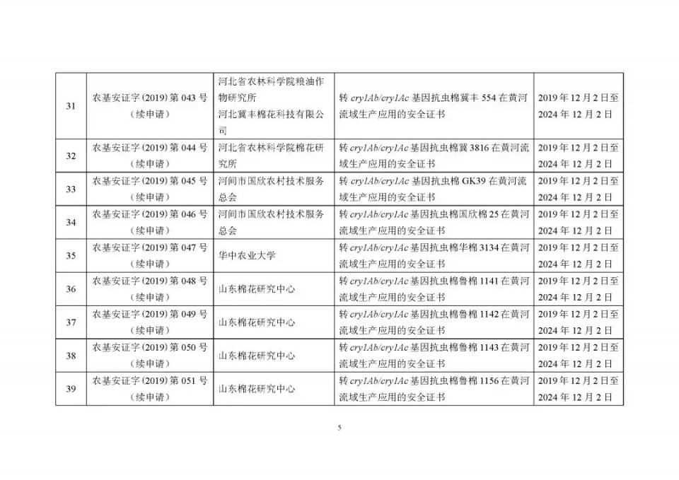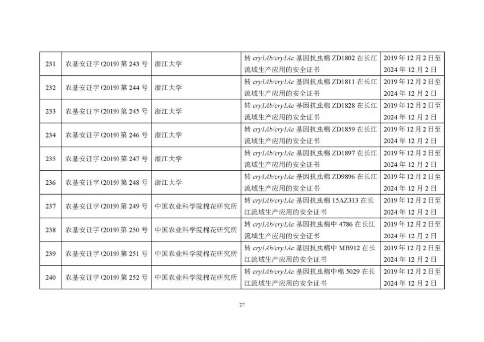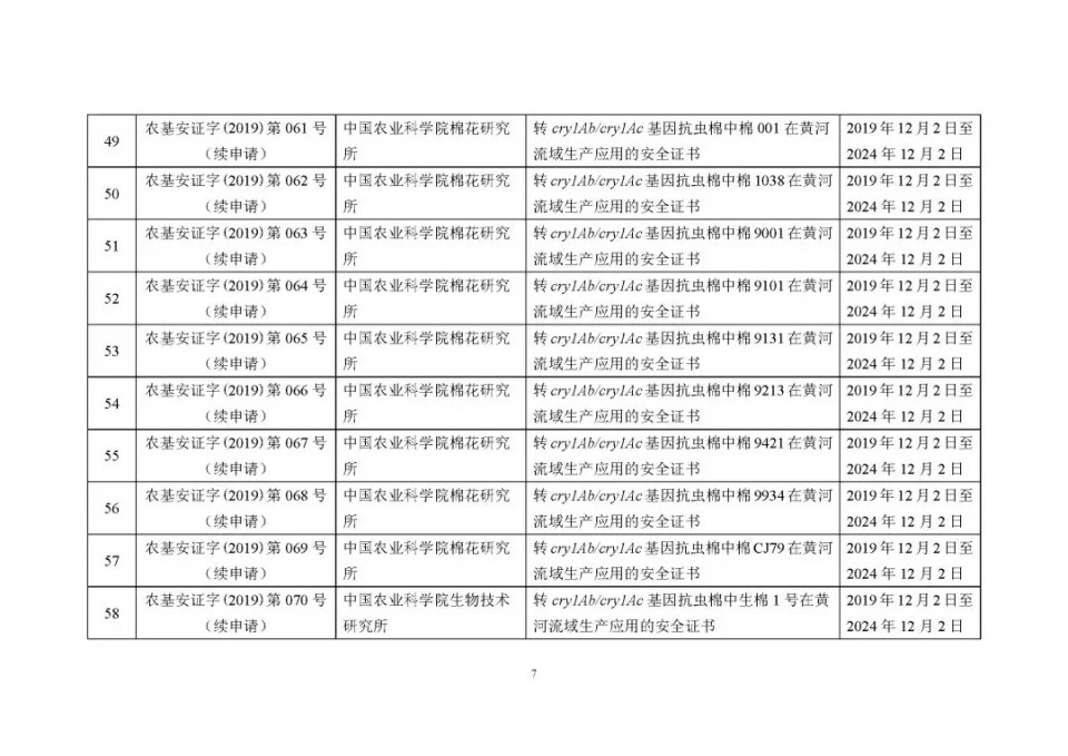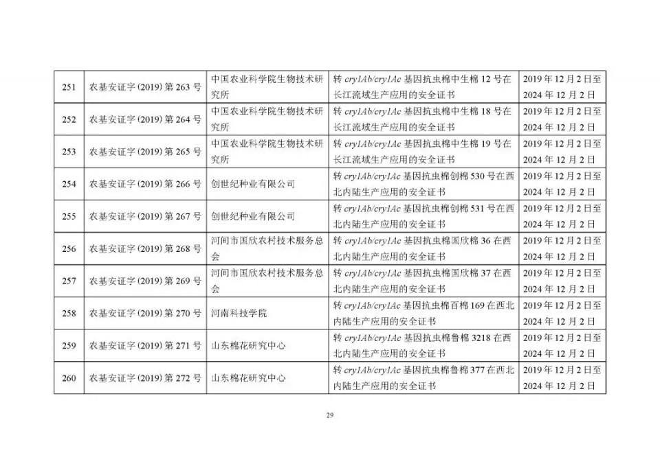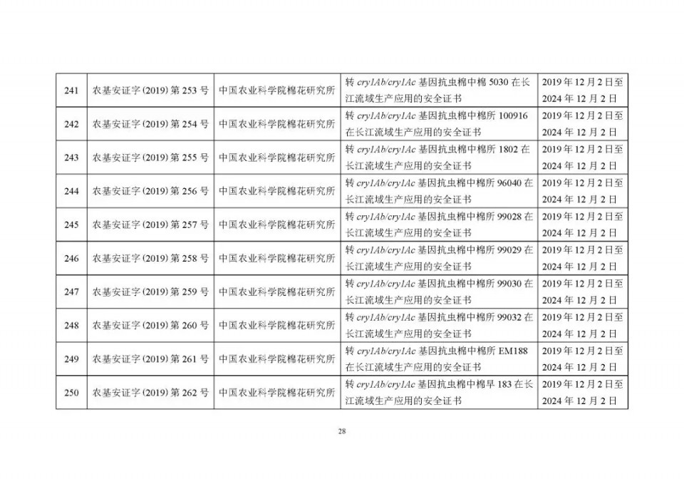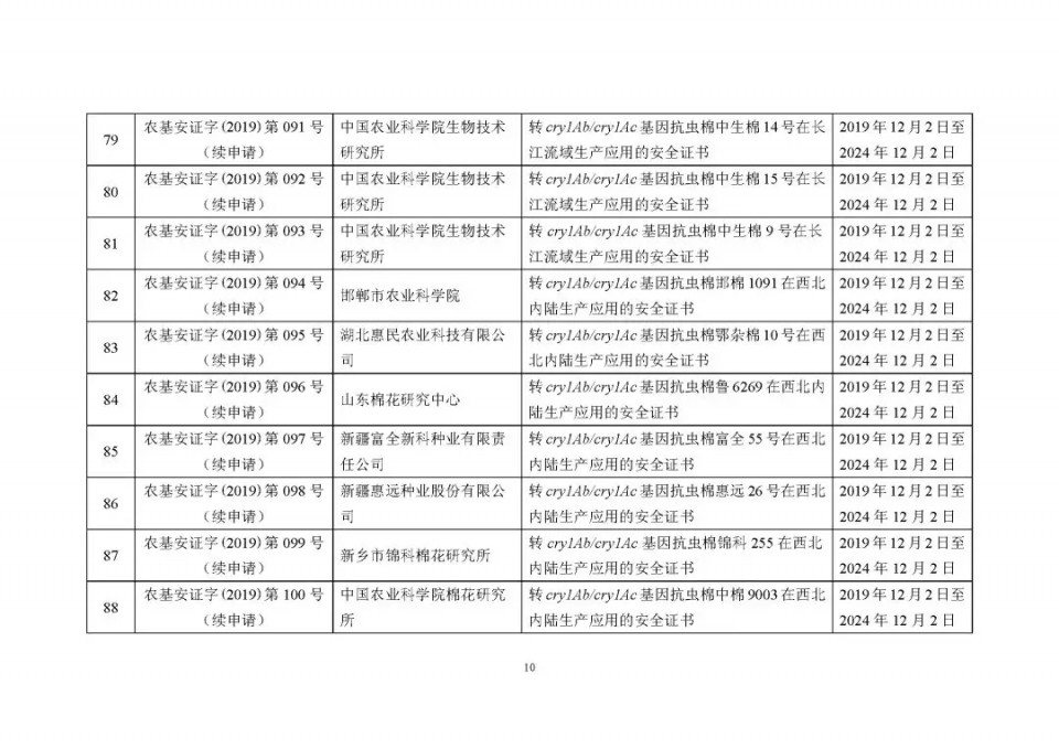 2020年1月21日15:00農(nóng)業(yè)農(nóng)村部網(wǎng)站公布了 2019 年農(nóng)業(yè)轉(zhuǎn)基因生物安全證書(shū)(生產(chǎn)應(yīng)用)批準(zhǔn)清單 ,詳見(jiàn)如下: