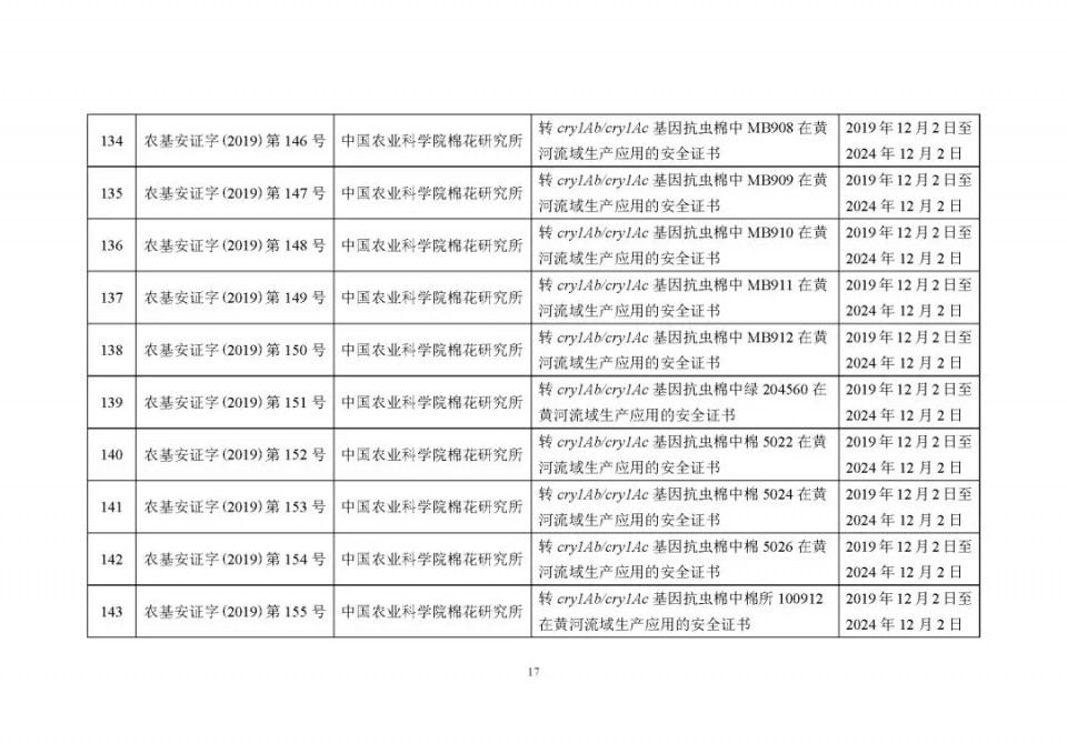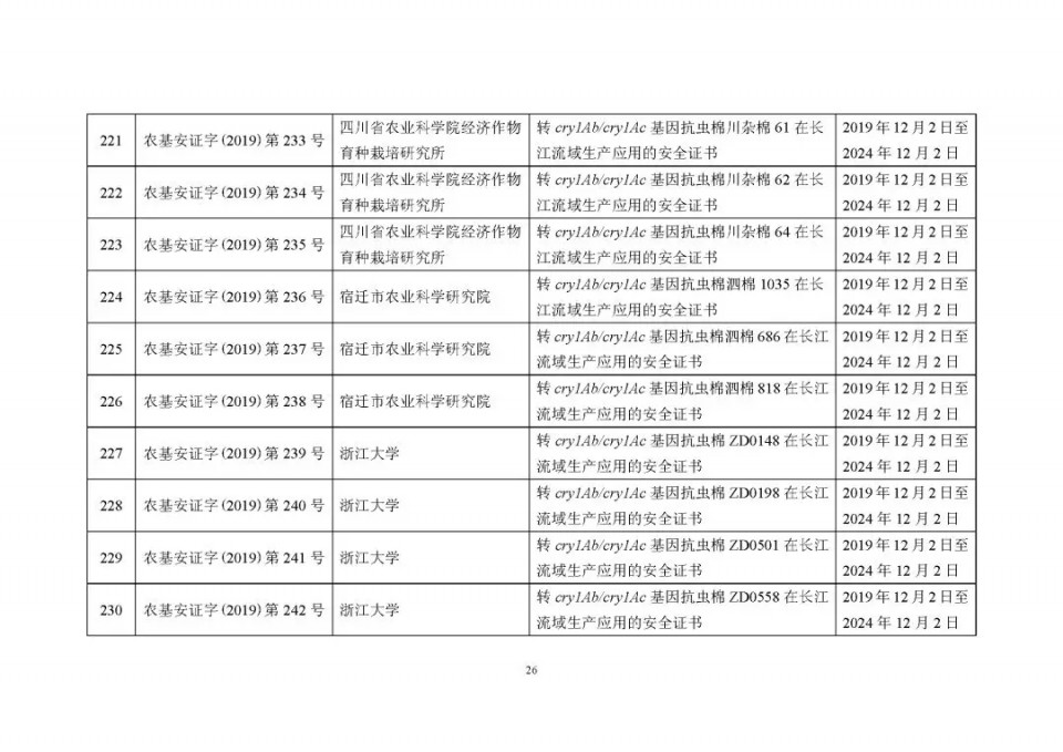 生物安全證書(shū)(生產(chǎn)應(yīng)用)批準(zhǔn)清單