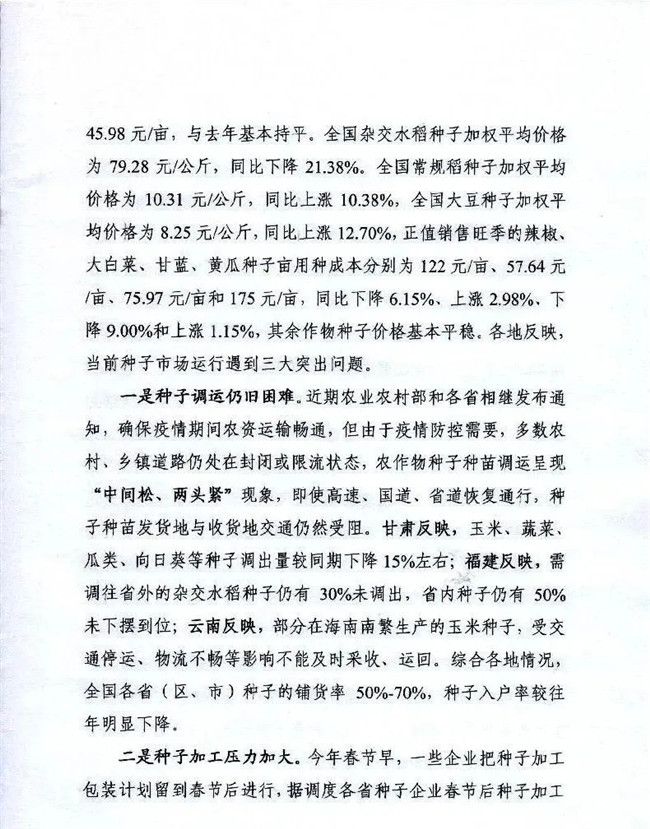 種子銷量同比減少10%~30%!全國三成以上春播用種尚未加工!