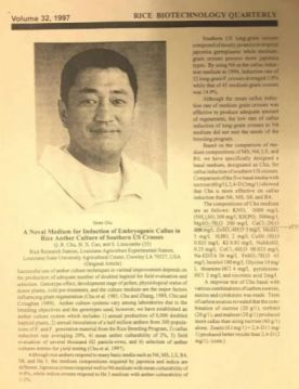 1983年,褚啟人到廣西農(nóng)科院參加全國(guó)花培會(huì)議(左圖后排左三);右圖為1997年褚啟人發(fā)表的文章