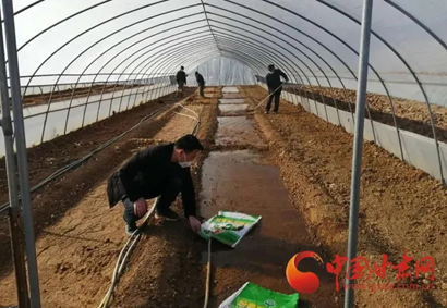 眼下正是辣椒育苗的黃金時(shí)節(jié),走進(jìn)徽縣銀杏樹鎮(zhèn)關(guān)坡村集約化育苗中心和慶壽村康慶蔬菜種植農(nóng)民專業(yè)合作社,工人們正忙著犁地、覆膜、澆水、點(diǎn)栽等辣椒育苗前期工作,現(xiàn)場(chǎng)一派忙碌的景象。