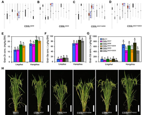 論文通訊作者、水稻所研究員高振宇介紹,通過多年兩地實(shí)驗(yàn),課題組發(fā)現(xiàn),一種染色體片段代換系的稻米中鎘含量比對(duì)照93-11顯著降低,而錳含量有所提高。