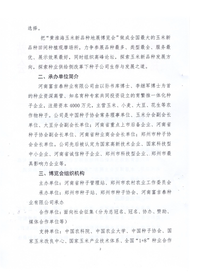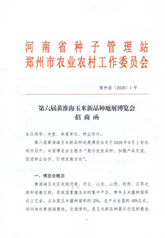 第六屆黃淮海玉米新品種地展博覽會 招商函