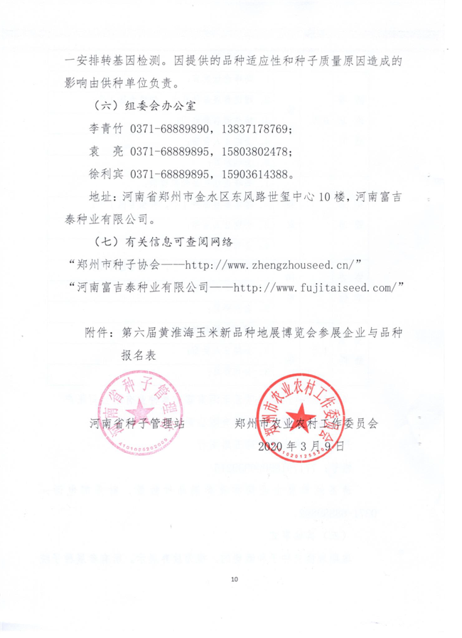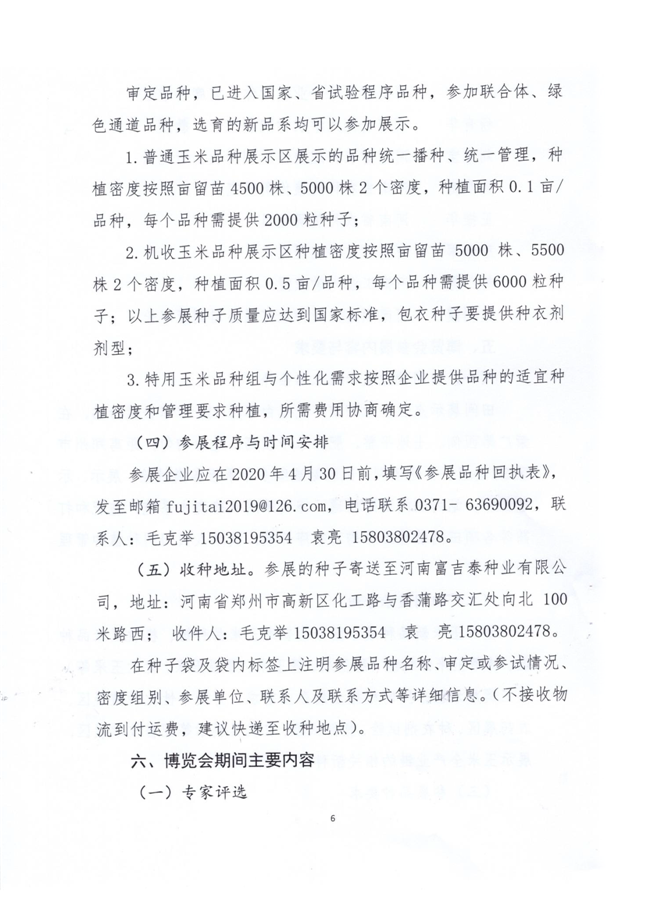 (五)收種地址。參展的種子寄送至河南富吉泰種業(yè)有限公司。