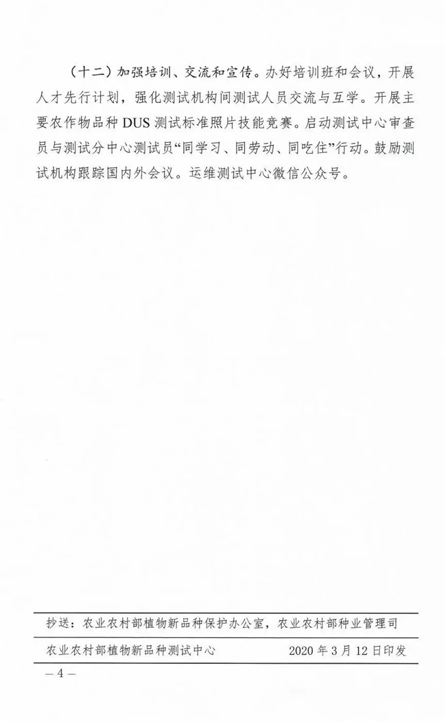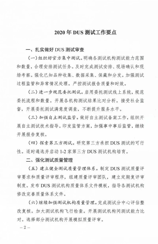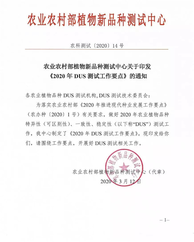 農(nóng)業(yè)農(nóng)村部植物新品種測試中心發(fā)布《2020年DUS測試工作要點》
