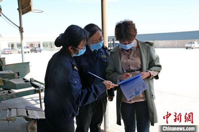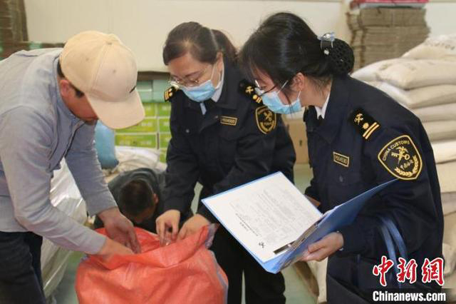 4月初,日前,經(jīng)蘭州海關(guān)所屬酒泉海關(guān)檢疫合格,約6噸、價值33萬元的紫茉莉、金盞菊、燈籠果等花卉種子順利出口波蘭。圖為海關(guān)工作人員對種子進(jìn)行抽檢?!×豪ぁz