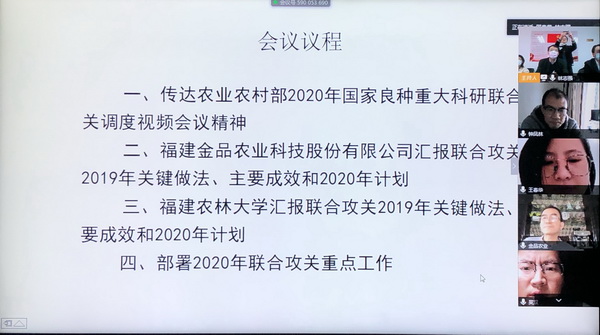 面對疫情,為了確保聯(lián)合攻關任務順利完成,4月9日,福建省種子總站組織召開了國家青梗菜良種重大科研聯(lián)合攻關2020年工作推進視頻會。本次視頻會議設立1個主會場和4個分會場,福建省種子總站朱鴻站長、秘書長單位福建金品農(nóng)業(yè)科技股份有限公司林曉董事長、首席專家福建農(nóng)林大學吳雙教授,以及來自攻關聯(lián)合體成員單位的部分代表共計10多人參加了會議。朱鴻站長主持會議并發(fā)表講話。