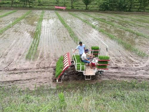 會議現(xiàn)場演示了缽毯苗機插秧全過程,1臺“洋馬”牌六行乘坐式插秧機在1小時內完成3畝母本插秧,比老式插秧機效率提升了近2倍。縣農業(yè)農村委委員皮欣在現(xiàn)場會上指出,缽毯苗機插秧是目前國內最為先進的機插秧技術之一,不僅大幅度提高了插秧效率,而且可以通過變換齒輪調節(jié)插秧規(guī)格,滿足水稻不同品種的生產(chǎn)需求,節(jié)本增效效果十分明顯。普順鎮(zhèn)鎮(zhèn)長趙守德表示,隨著缽毯苗機插秧技術的成熟和推廣應用,水稻制種產(chǎn)業(yè)全程機械化最后一道瓶頸得以解決,全鎮(zhèn)的制種面積明年將會上一個新臺階。現(xiàn)場觀摩的制種大戶們對缽毯苗機插秧技術表現(xiàn)出濃厚的興趣,紛紛表示明年將采用該項技術發(fā)展雜交水稻制種。