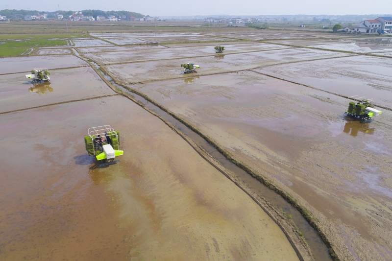 發(fā)力“單改雙” ,水稻大省湖南的雙季稻攻堅戰(zhàn)。圖為2020年4月8日,在湖南省汨羅市羅江鎮(zhèn)黃市村,村民利用插秧機進行插秧。新華社記者 周敏/攝