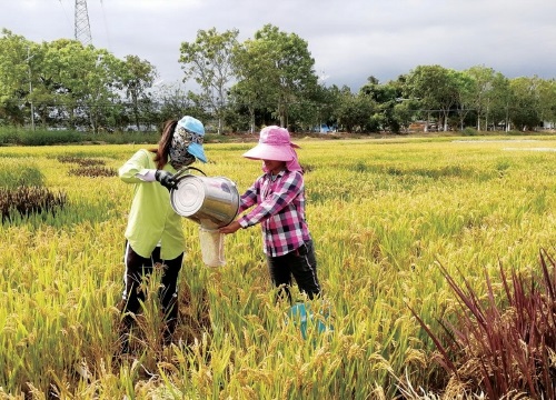 上海市松江區(qū)農(nóng)技人員在南繁基地收種子。 資料圖