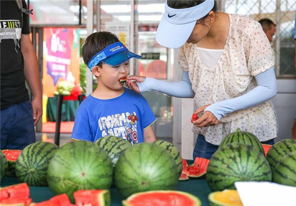 市民品嘗西瓜。