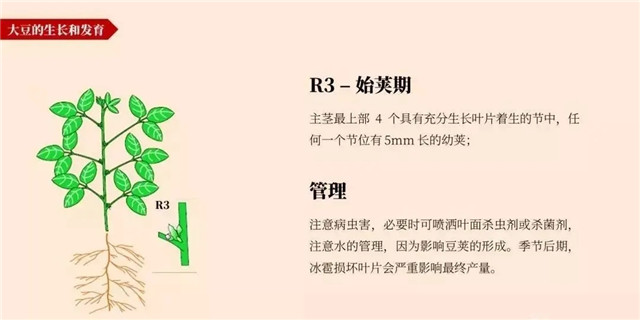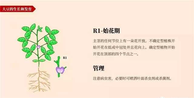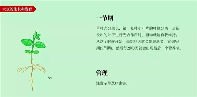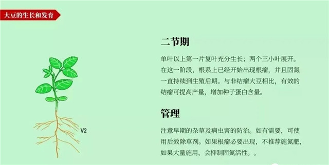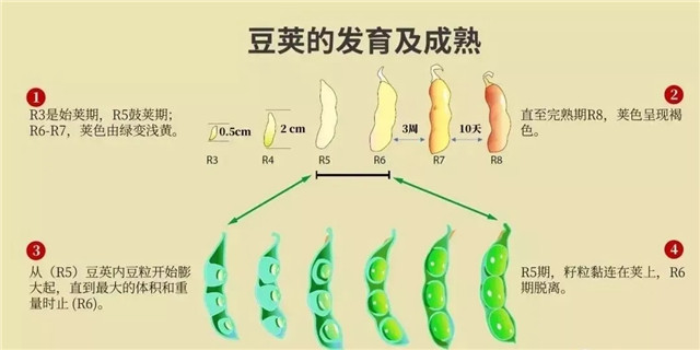 大豆的整個生長過程分 3 個生育階段和 6 個生育時期。分別為:營養(yǎng)生長階段、營養(yǎng)生長和生殖生長并進階段和生殖生長階段;種子萌發(fā)期、幼苗期、分枝期、開花期、結莢鼓粒期和成熟期。