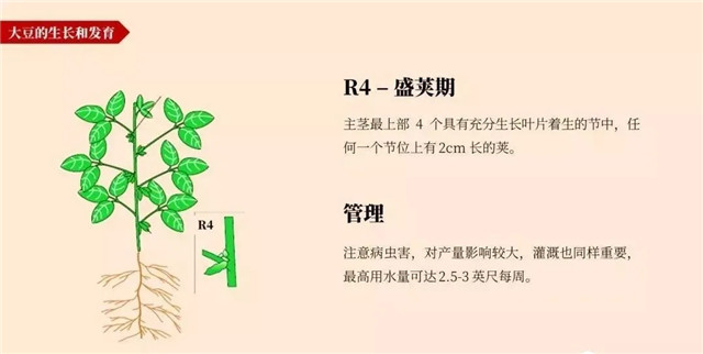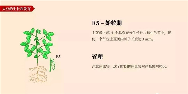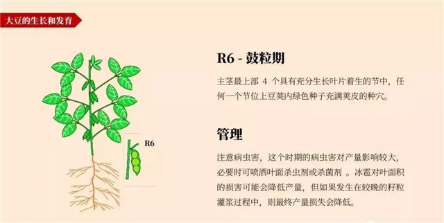 從豆英內豆粒開始膨大起,直到最大的體積和重量時止稱鼓粒期。開花后10d內,種子內的干物質積累增加緩慢,之后的7d增加很快,大部分干物質是在這以后大約21d內積累的。鼓粒期約30—40d。鼓粒完成時的種于含水量約90%。鼓粒期是大豆種子形成的重要時期,此時大豆生育是否正常將決定每英粒數(shù)的多少、粒重的高低和種子化學成分。此時干旱或多雨致澇能造成死英、秕粒、粒重下降而嚴重影響產量。保證種了正常發(fā)育要滿足兩個條件:①植株本身貯藏物質豐富,根系不衰老,葉片的同化作用旺盛;②要有充足的水分供應。