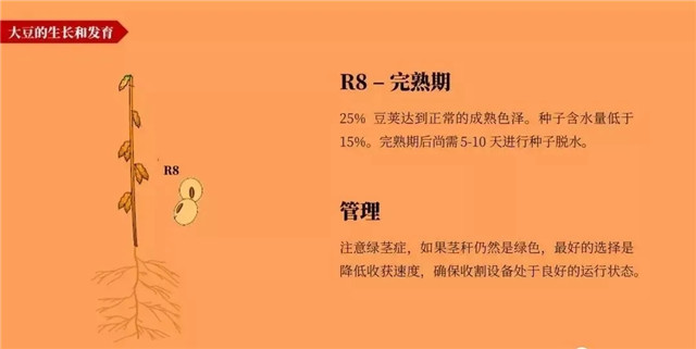 葉片受黃脫路,豆粒脫水,呈現(xiàn)品種固有性狀,這時種子含水己降至15%以下,直到搖動植株時英內有輕微響聲,即為成熟期。此時應當降低土壤水分,加速種子和植株變干,便于及時收獲,同時防止肥水過多造成貪青晚熟,影響及時收獲和倒茬。此期天氣晴朗干燥可促進成熟且有利于提高品質。