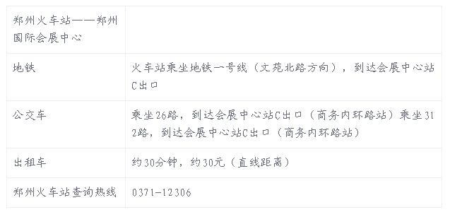 或者您可以先乘坐城際輕軌,在鄭州東站下車(chē),轉(zhuǎn)乘地鐵1號(hào)線(文苑北路方向)到鄭州國(guó)際會(huì)展中心站C出口即可。