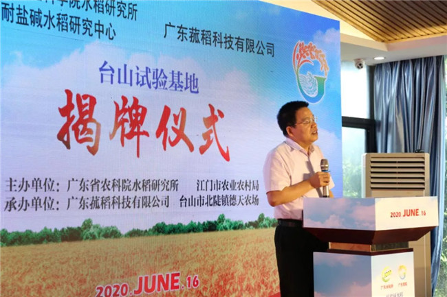 6月16日,廣東省農(nóng)科院水稻研究所聯(lián)合廣東菰稻科技有限公司建設(shè)的臺(tái)山耐鹽堿水稻試驗(yàn)基地在該市北陡鎮(zhèn)寨門(mén)村德天農(nóng)場(chǎng)舉行掛牌成立儀式。