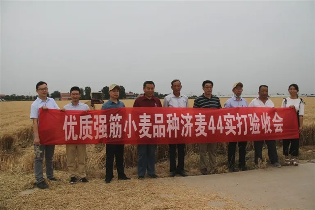 來自中國農(nóng)科院、中國科學(xué)院、石家莊市農(nóng)林科學(xué)院、山東省種子管理總站、山東省農(nóng)技推廣總站的5名專家組成的驗收專家組,按照農(nóng)業(yè)農(nóng)村部小麥高產(chǎn)創(chuàng)建產(chǎn)量測產(chǎn)驗收辦法,在位于壽光市化龍鎮(zhèn)欽西村的山東碧龍面業(yè)股份有限公司268畝濟麥44示范方,隨機抽取3塊田共機收4.39畝,平均畝產(chǎn)732.23公斤;在寒亭區(qū)高里街道橋西二村的濟麥44高產(chǎn)攻關(guān)田機收3.288畝,平均畝產(chǎn)766.62公斤,創(chuàng)全國超強筋小麥單產(chǎn)紀(jì)錄。