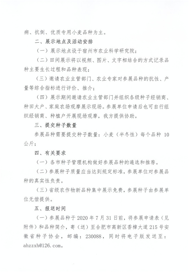 安徽征集2020-2021年度省級(jí)主要小麥集中展示品種