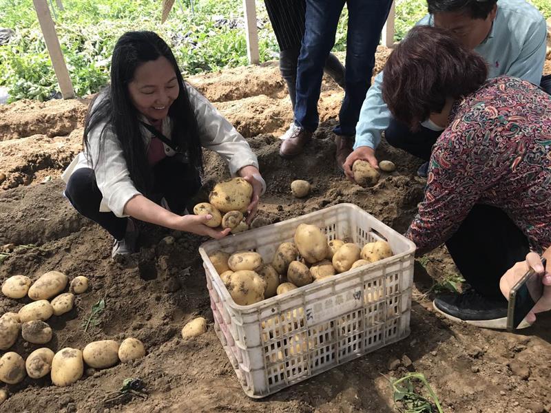 馬鈴薯良種攻關首席科學家金黎平(左一)在觀察新品種的性狀