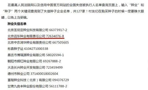 二三里資訊發(fā)現(xiàn),早在三年前,北京遠(yuǎn)東種業(yè)有限責(zé)任公司就已經(jīng)在最高人民法院網(wǎng)及信用中國官方網(wǎng)公布的種子失信企業(yè)黑名單中,而且黑名單的第二家就是北京遠(yuǎn)東種業(yè)有限責(zé)任公司。