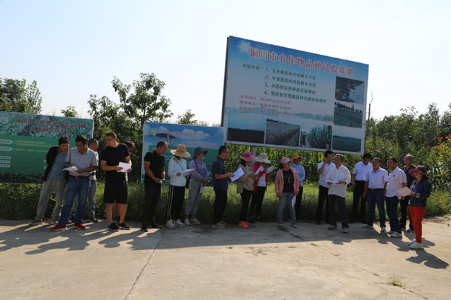 與會人員先后深入耀州區(qū)關(guān)莊鎮(zhèn)關(guān)莊村,市站王家砭試驗點,印臺區(qū)街道辦事處虎頭村,宜君縣太安鎮(zhèn)郎二井村、哭泉鎮(zhèn)金盆村、宜陽街道辦牛家莊村實地查看玉米品種展示、示范及大田長勢情況,對今年引進的玉米新品種進行現(xiàn)場考察觀摩。在觀摩過程中,與會人員認真詳細的對參試品種的農(nóng)藝性狀進行逐一點評,特別是今年在挖掘種質(zhì)資源的過程中,把農(nóng)家常規(guī)品種紅心馬牙加入到了展示品種之列,引起大家關(guān)注,這對改善玉米品種的品質(zhì)及保護種質(zhì)資源尤為重要。宜君站實施的不同播期增密試驗,對指導(dǎo)生產(chǎn)意義重大。觀摩結(jié)束后,市種子管理站站長馮艷莉就全市農(nóng)作物品種試驗篩選展示工作進行了全面總結(jié),對各區(qū)縣的玉米品種展示工作做了充分肯定,并要求各區(qū)縣下一步要繼續(xù)做好玉米品種的展示工作,進一步提升展示的試驗水準,高標準,嚴要求,相互學(xué)習(xí),共同提高,把全市的玉米品種展示工作做的更好。并提出全市種業(yè)工作要立足農(nóng)業(yè)供給側(cè)結(jié)構(gòu)改革,圍繞全市特色農(nóng)業(yè)發(fā)展開展工作,使種業(yè)更好的服務(wù)于鄉(xiāng)村振興,為我市種植業(yè)轉(zhuǎn)型升級、農(nóng)業(yè)綠色高質(zhì)量發(fā)展提供基礎(chǔ)保障和品種支撐。