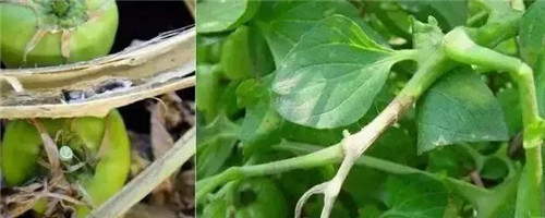 苗期雖可染病,但不顯癥,多在開花結(jié)果期開始發(fā)病。