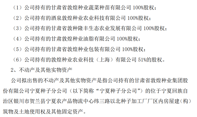此外,敦煌種業(yè)還披露,將轉讓6家子公司股權及出售寧夏種子分公司資產。該項交易預計取得收入1.96億元,收回子公司占用公司資金1億元,并減少有息債務約1.09億元,有利于公司聚焦種子主業(yè),優(yōu)化資產負債結構。