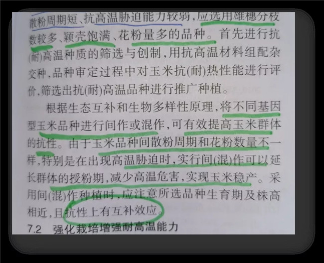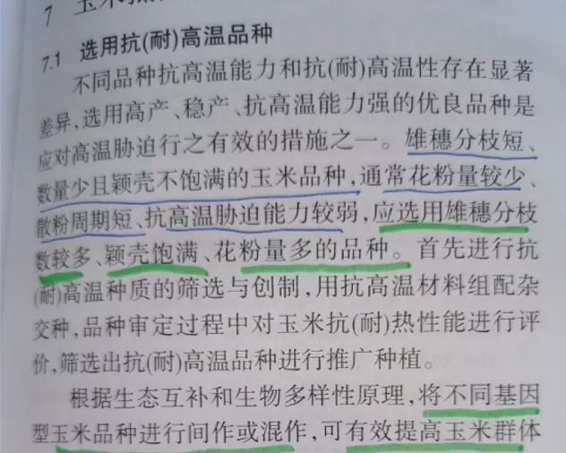 山東農(nóng)業(yè)大學(xué)任寒碩士和董樹亭教授共同研究認(rèn)為,雄穗分枝多且雄穗分枝長,穎殼飽滿的品種相對(duì)耐高溫(也相對(duì)抗旱能力較好)。