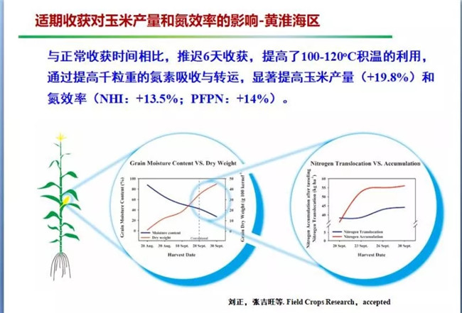 據(jù)山東省農(nóng)業(yè)大學(xué)劉正博士、張吉旺博士的研究,黃淮海的玉米“活稈成熟”而晚收獲6天可以“白撿”產(chǎn)量1/5。也就是說,你種植的玉米品種如果發(fā)生早衰,減產(chǎn)1/5以上損失。