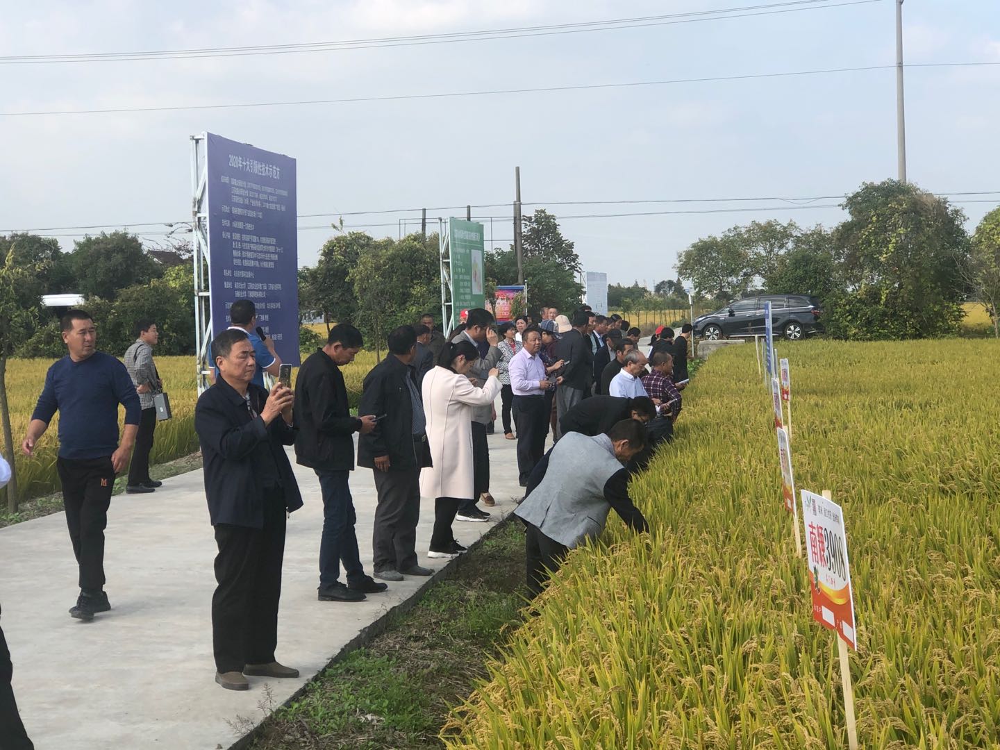 10月19日上午,如東縣種子管理站組織各鎮(zhèn)(區(qū)、街道)農(nóng)業(yè)農(nóng)村局種子員、種糧大戶及種子經(jīng)營(yíng)戶代表、縣有關(guān)種子企業(yè)負(fù)責(zé)人約50余人,實(shí)地觀摩了掘港街道十里墩村縣水稻新品種綜合性測(cè)試基地、泗稻301示范片,掘港街道肖河村南粳3908示范片,岔河金河村金香玉1號(hào)示范片,馬塘鎮(zhèn)亞蘇村寧香粳9號(hào)示范片,苴鎮(zhèn)街道肖橋村武香粳113、中江粳1號(hào)示范片。觀摩過程中,企業(yè)負(fù)責(zé)人現(xiàn)場(chǎng)介紹了各品種田間種植情況。