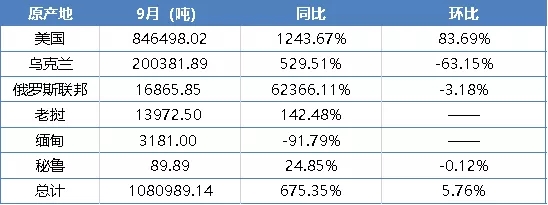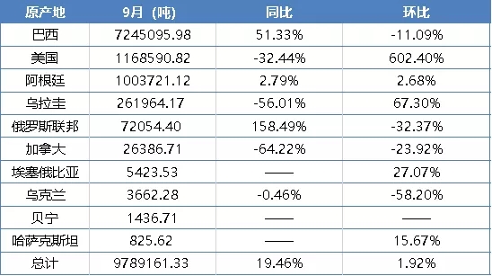 9月大豆進(jìn)口分項(xiàng)數(shù)據(jù)一覽