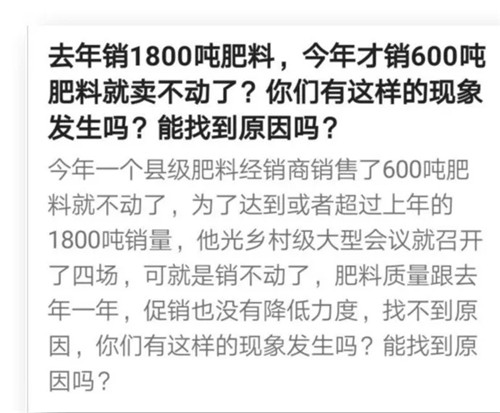 第五點原因是,真正的“為農(nóng)民著想”,讓農(nóng)民“少花錢,多打糧”的有大智慧的“賣農(nóng)資的精英人士”屬于少數(shù)。但更多的“賣農(nóng)資的”依然陷入“雞進雞群”的慘烈競爭中,市場份額太小但“又想多賺”,科技素質(zhì)較低且“又懶又貪”,導致了偽劣復合肥的泛濫。