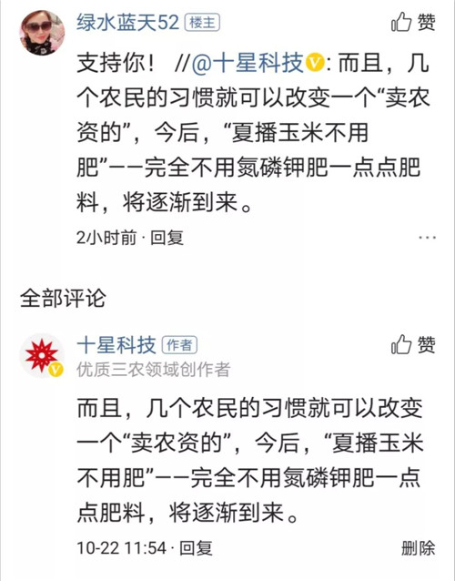 而且,北方農(nóng)村網(wǎng)科技顧問團成員“十星科技”對文章開篇(上期)的點題讀者留言的回復得到她的認可!