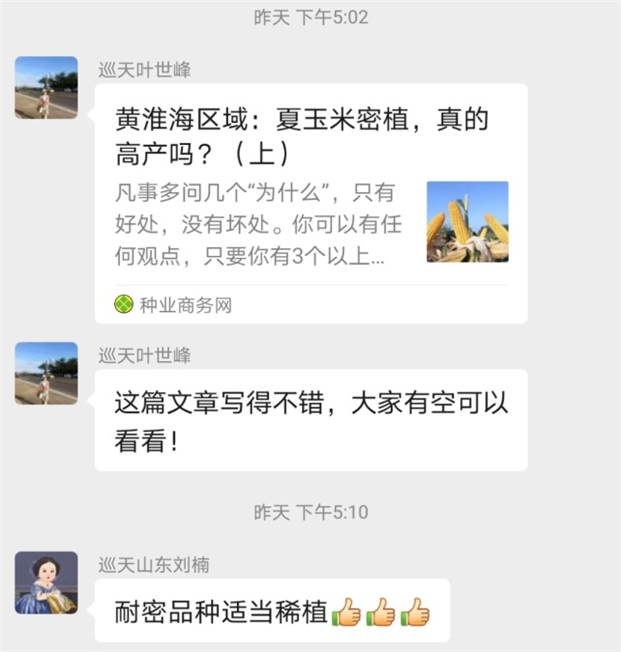在《“賣農(nóng)資的”為啥被農(nóng)戶“瞧不起”?》《玉米種子:毀于偽劣復(fù)合肥》和《黃淮海區(qū)域:夏玉米密植,真的高產(chǎn)嗎?》等系列文章刊發(fā)之后,得到玉米種子行業(yè)內(nèi)一部分具有大智慧的、有上進心的、想變得更好的“有識之士”和“有志之士”的認可。