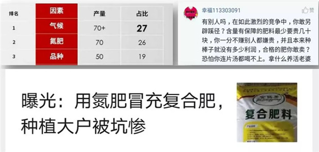 偽劣復(fù)合肥,到底有多么暴利呢?據(jù)已經(jīng)被曝光的案例,偽劣復(fù)合肥竟然是“賣1袋,賺2袋”!但這樣的“破玩意”注定銷量上不去,越來越多的種植戶“明白了怎么回事”,“賣偽劣復(fù)合肥的”的零售商只會越來越難干,很快被市場拋棄。