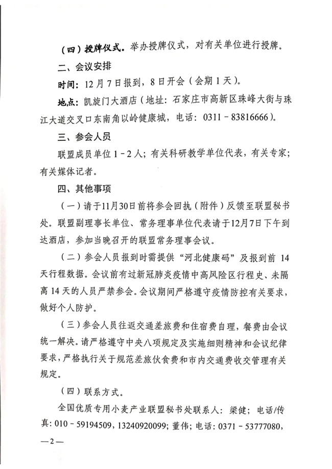 現(xiàn)誠(chéng)招2020年中國(guó)小麥產(chǎn)業(yè)發(fā)展暨質(zhì)量發(fā)布年會(huì)協(xié)辦及贊助單位,具體事宜請(qǐng)致電聯(lián)盟秘書(shū)處董偉,電話:0371-53777080 手機(jī)號(hào)碼:13673688987。