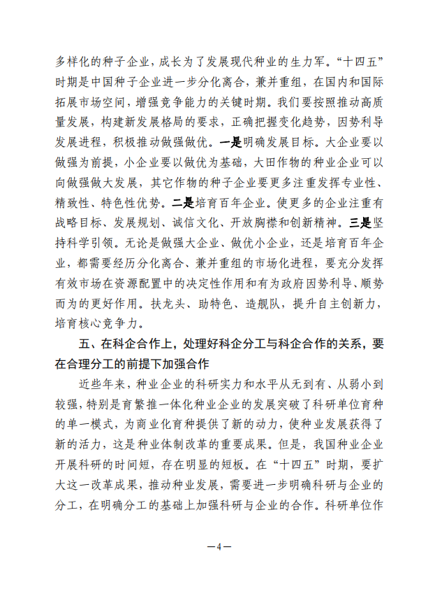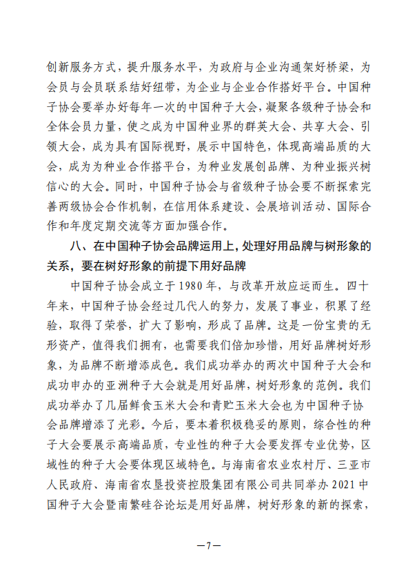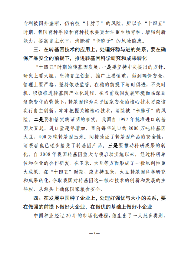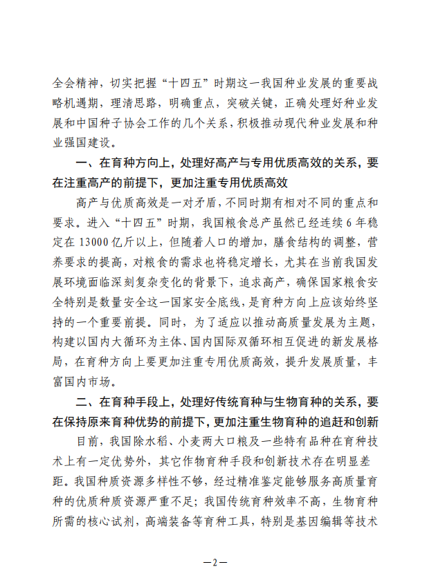 “十四五”時期中國種業(yè)發(fā)展和中國種子協(xié)會工作需正確處理好幾個關(guān)系