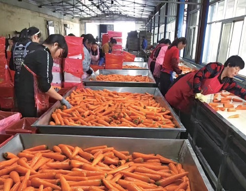 青島有田農(nóng)業(yè)發(fā)展有限公司胡蘿卜加工車間。 資料圖