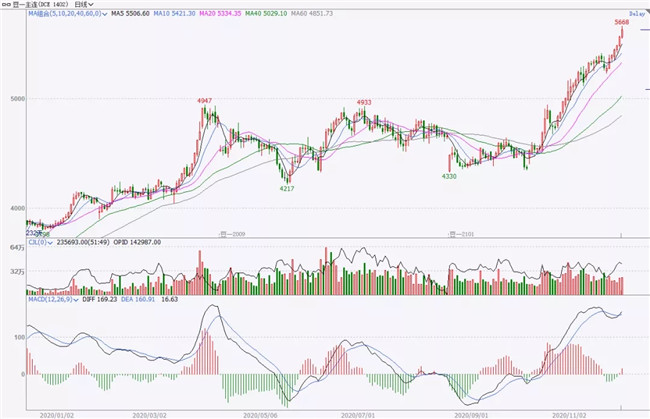 豆一宛若掙脫了韁繩的馬匹,連續(xù)七日保持上漲趨勢,其中連續(xù)四日刷新上市新高,今日更是突破5600元,高達(dá)5668元/噸。早在8月末,豆一期價(jià)還在4300元附近波動(dòng),僅用兩個(gè)月時(shí)間漲幅就高達(dá)32%。