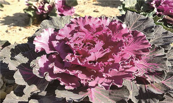 記者在北京金六環(huán)農(nóng)業(yè)園看到,一種長得像卷心菜,顏色絢麗多姿的“花卉”格外引人注目,有黃色、紫色、粉色等顏色,這就是昌平區(qū)農(nóng)業(yè)技術(shù)推廣站試植的冬季觀賞蔬菜“羽衣甘藍(lán)”。
