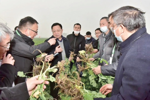 “‘華油雜62R’田間抗性表現(xiàn)優(yōu)異,處于國(guó)際先進(jìn)水平。”12月10日,湖北省院士專(zhuān)家“515”油菜產(chǎn)業(yè)科技服務(wù)行動(dòng)暨抗根腫病油菜新品種“華油雜62R”現(xiàn)場(chǎng)觀摩會(huì)在湖北省荊門(mén)市沙洋縣舉行。中國(guó)工程院院士、中國(guó)農(nóng)科院油料所研究員李培武,湖北省農(nóng)業(yè)農(nóng)村廳副廳長(zhǎng)肖長(zhǎng)惜等組成專(zhuān)家組,在沙洋曾集鎮(zhèn)張池村示范區(qū),對(duì)田間苗期抗病性進(jìn)行了現(xiàn)場(chǎng)鑒定。專(zhuān)家組一致認(rèn)為:“該品種在油菜抗根腫病分子標(biāo)記輔助育種方面達(dá)到國(guó)際領(lǐng)先水平,建議在我國(guó)油菜根腫病大面積迅速蔓延的背景下,加大在發(fā)病區(qū)的推廣力度。”
