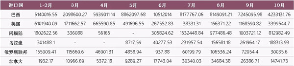 從數(shù)據(jù)來看,美國(guó)、巴西以及阿根廷為主要的進(jìn)口國(guó)。在下半年,埃塞比亞、哈薩克斯坦、貝寧幾個(gè)等幾個(gè)國(guó)家的大豆也成為我國(guó)的大豆補(bǔ)充國(guó)。國(guó)際大豆賣家紛紛涌入中國(guó)市場(chǎng),生豬需求旺盛是大豆需求增多的主要原因。