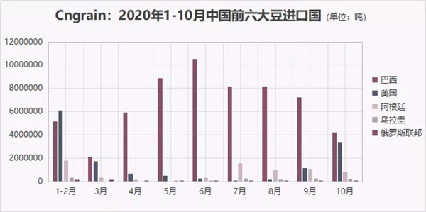 海關(guān)總署近日發(fā)布數(shù)據(jù)亦顯示,2020年1~11月,我國(guó)進(jìn)口大豆達(dá)9280.3萬噸,增加17.5%,我國(guó)月度進(jìn)口大豆數(shù)量已連續(xù)六個(gè)月創(chuàng)下歷史同期最高。