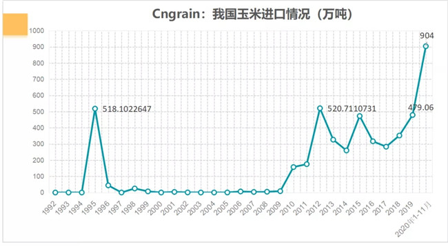 中國海關(guān)總署12月23日發(fā)布的統(tǒng)計數(shù)據(jù)顯示,2020年11月份中國玉米進口量為123萬噸,同比增1142.2%;1至11月份的進口量為904萬噸,同比提高122.7%。