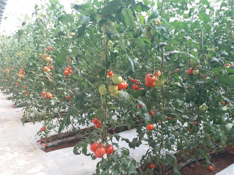 第三,配套雙層保溫和基質(zhì)加溫系統(tǒng),保障越冬生產(chǎn)。通過(guò)配備雙層覆蓋系統(tǒng)實(shí)現(xiàn)了極寒天氣最低氣度不低于10℃。晴天白天溫度控制指標(biāo)為25~28℃,最高不超過(guò)32℃;夜間控制在13~18℃;此外,針對(duì)基質(zhì)栽培溫度緩沖性差的問(wèn)題,在栽培槽內(nèi)安裝基質(zhì)加溫系統(tǒng),根部溫度控制在15~20℃,有效提高了根系吸水吸肥能力。