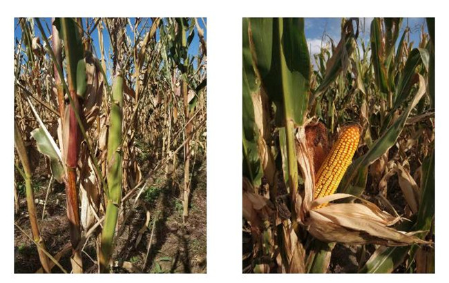 左為受粘蟲為害的玉米,右為抗蟲玉米。